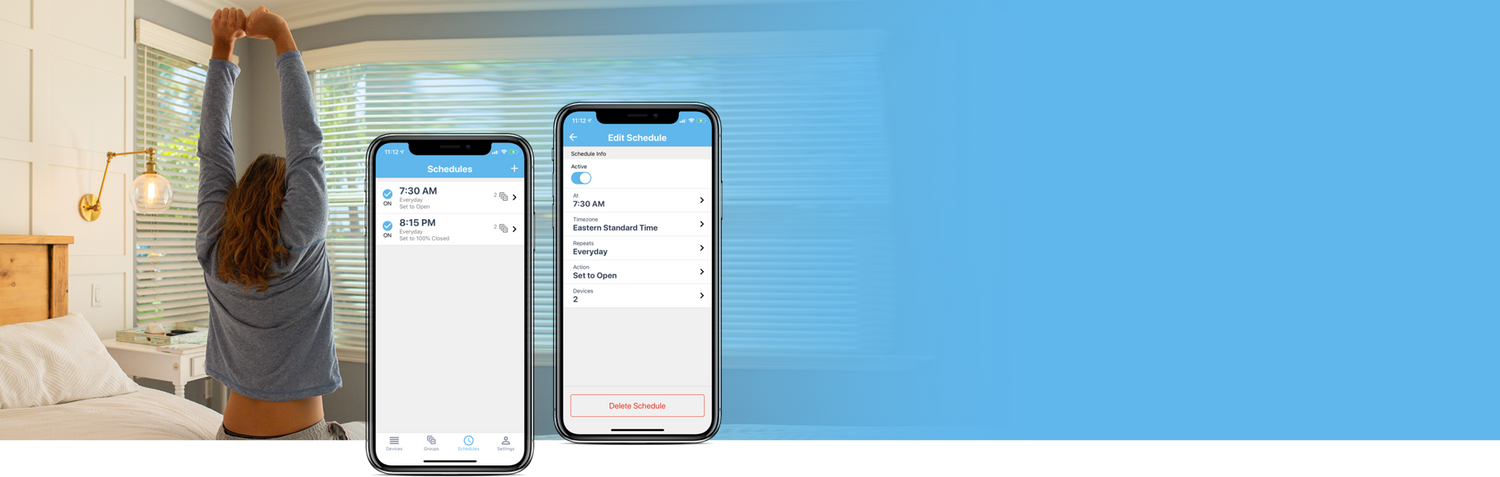 Automate your routines with schedules to open and close your blinds