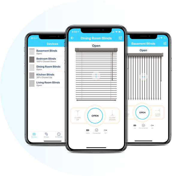 Control your blinds anywhere, anytime with our iPhone and Android apps